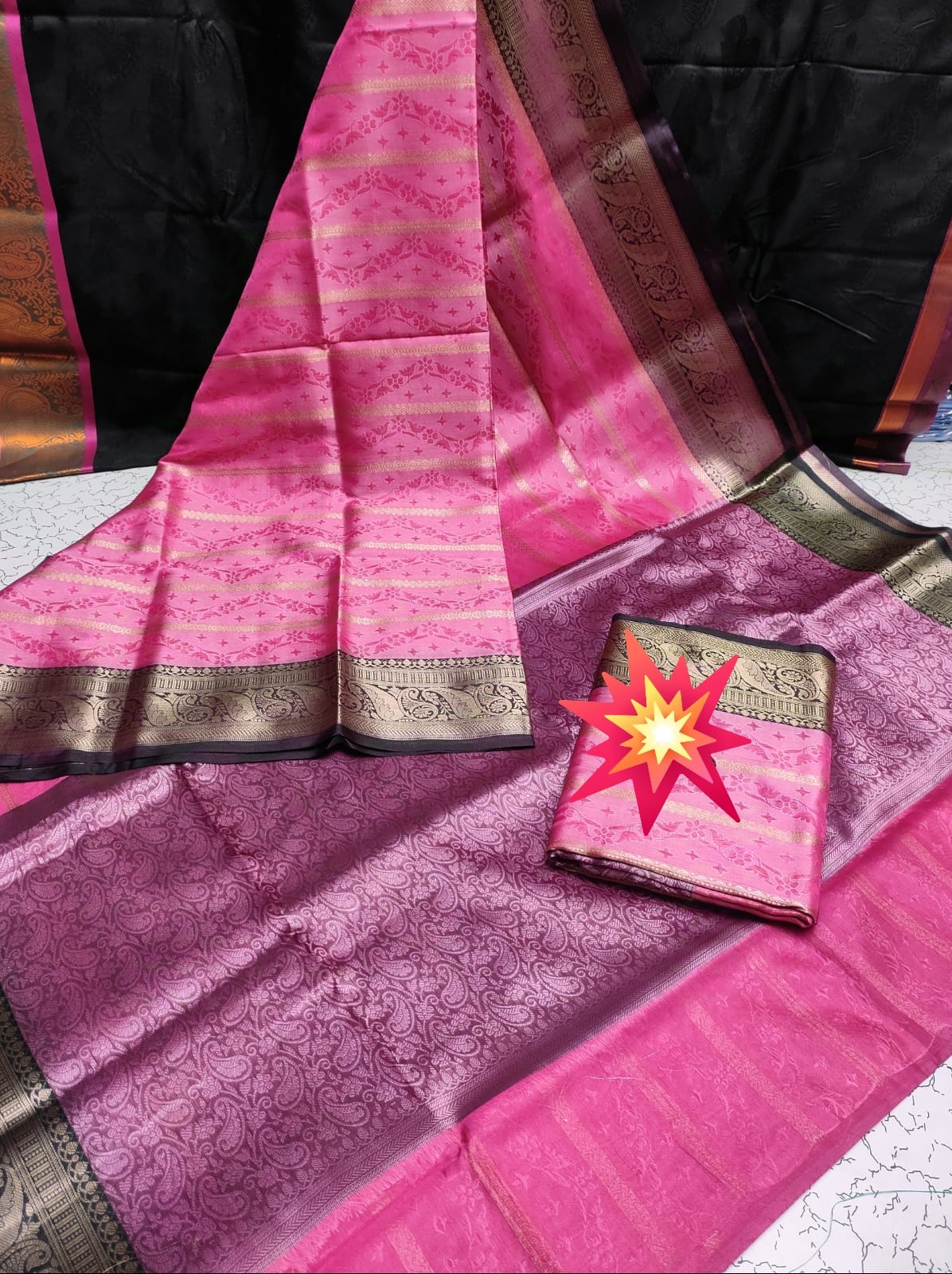 + Free ShippingPink Saree with Brown Border blouse and pallu