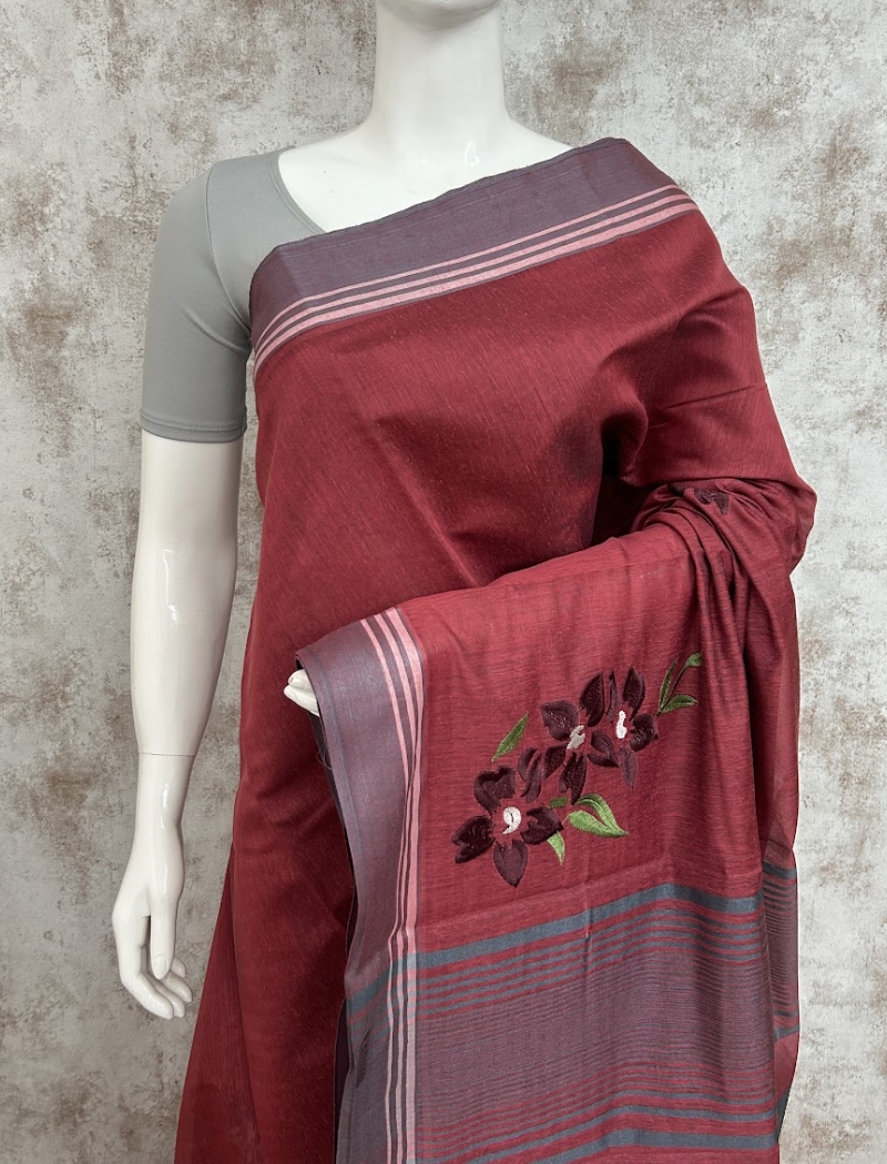 Maroon Colour Embroidery Cotton Saree