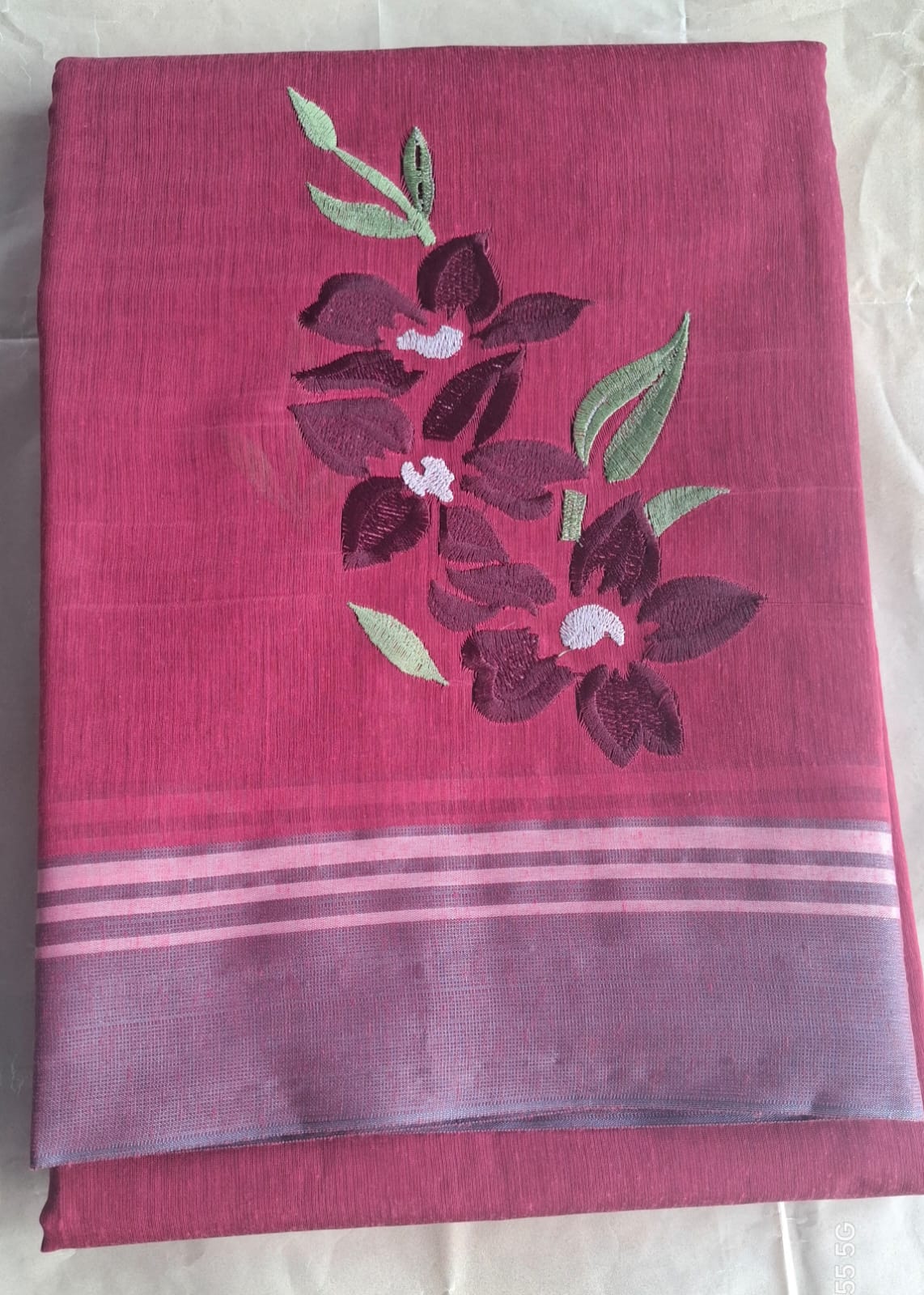 + Free ShippingMaroon Colour Embroidery Cotton Saree