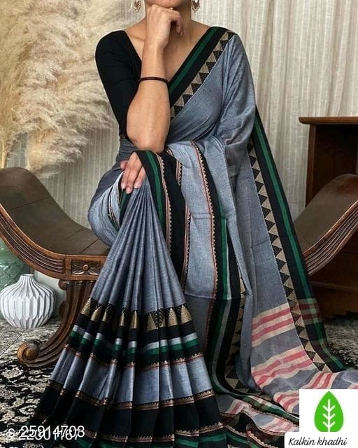Khadi sarees are traditional Indian design from hand spun and hand fabric. The word “khadi” comes from the Sanskrit word meaning ” hand woven.” These sarees are typically design from natural fibers like cotton or silk, and are famous for their unique texture and durability.