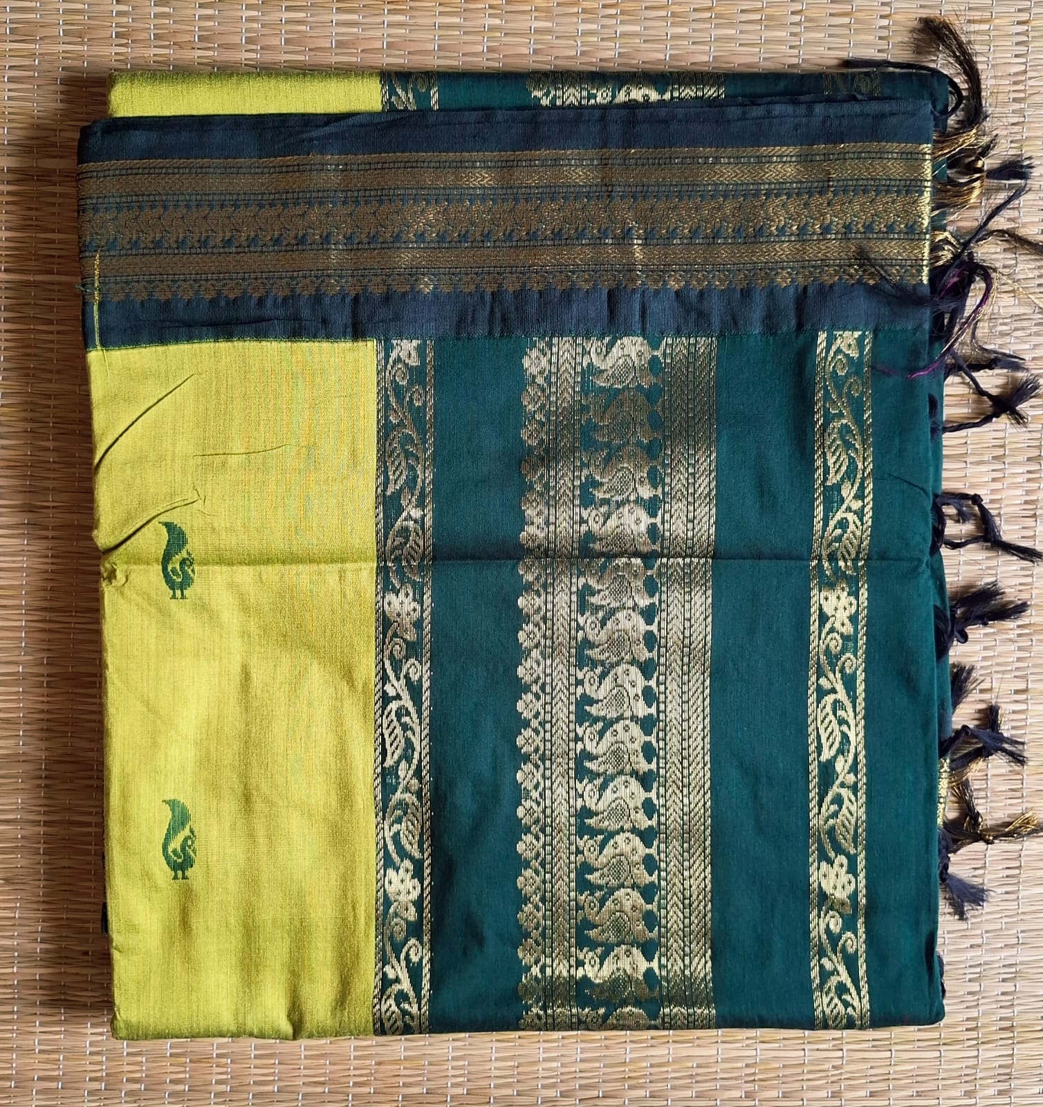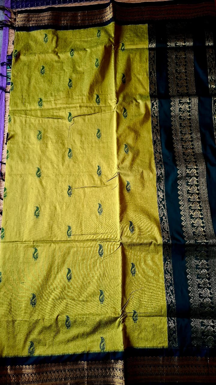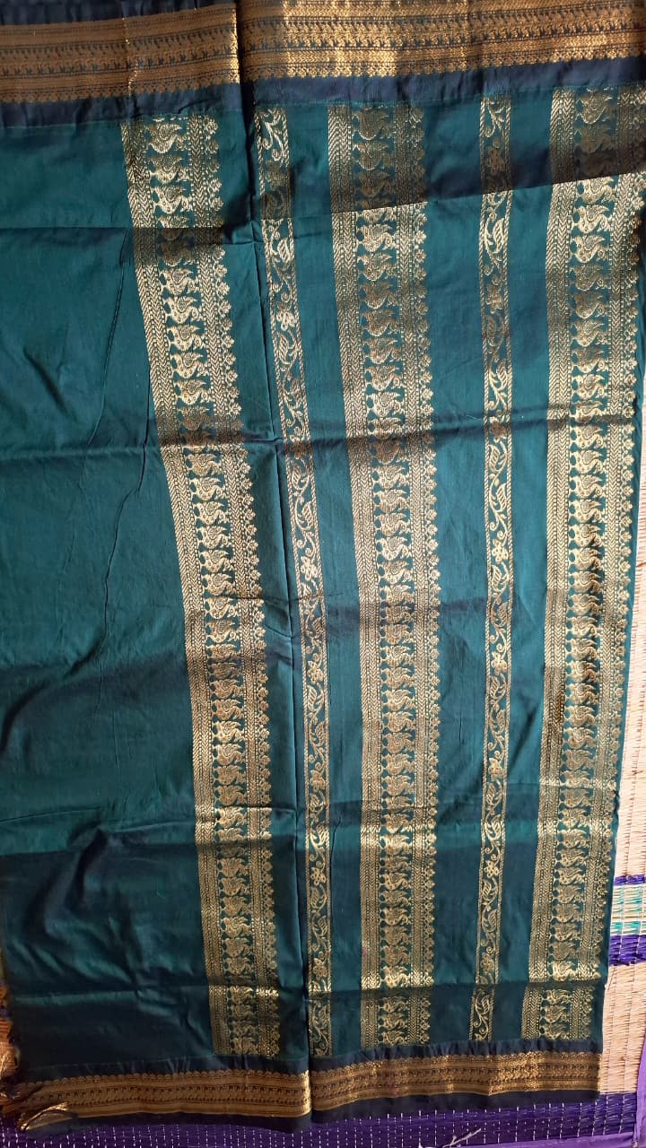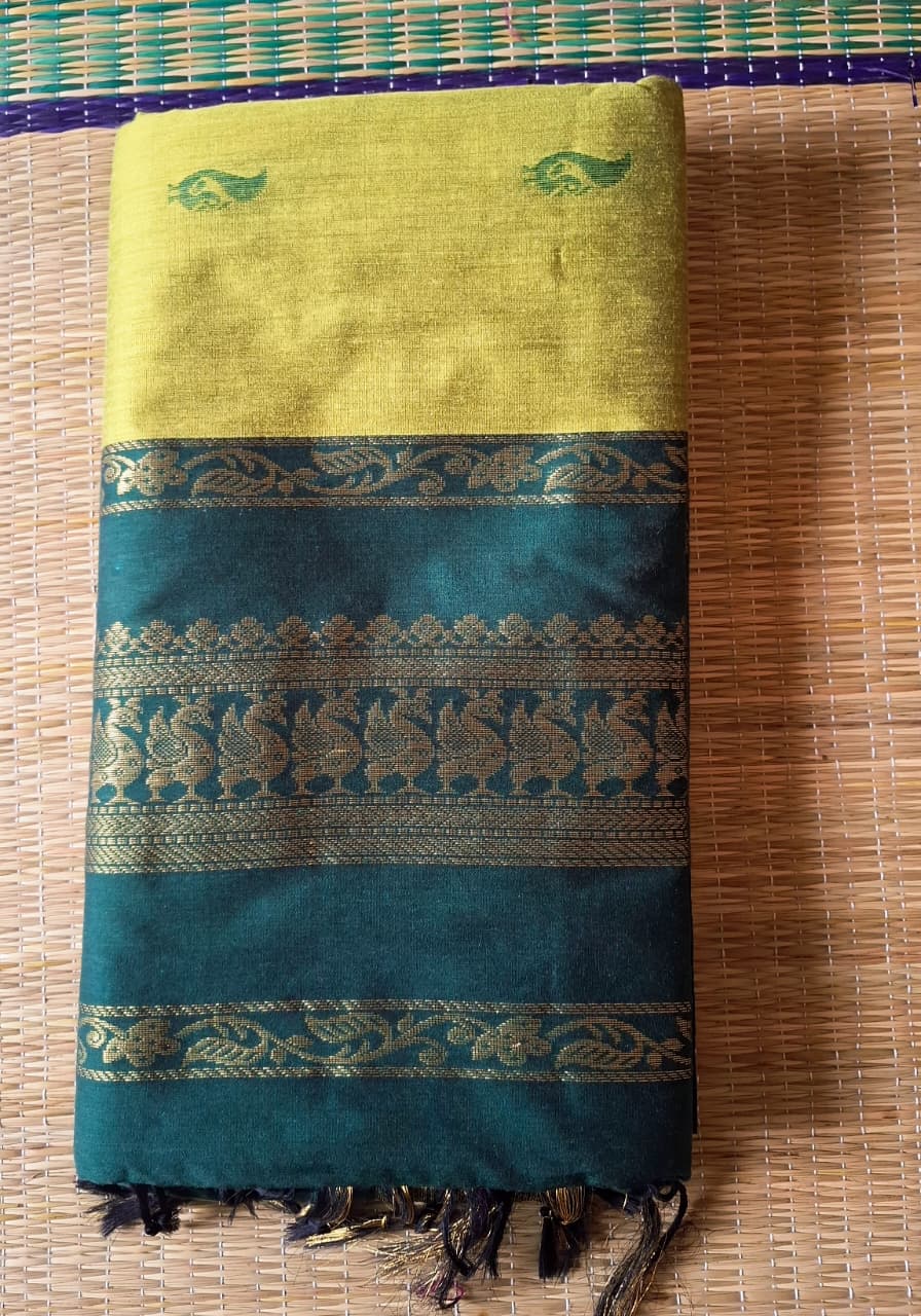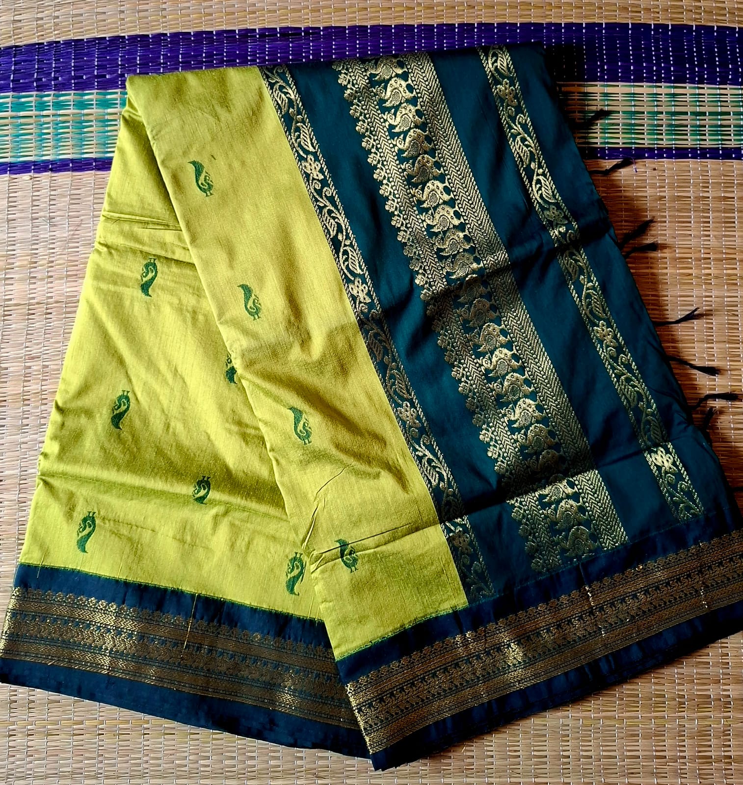 + Free ShippingParrot Green Saree with Rama Green border blouse and rich pallu