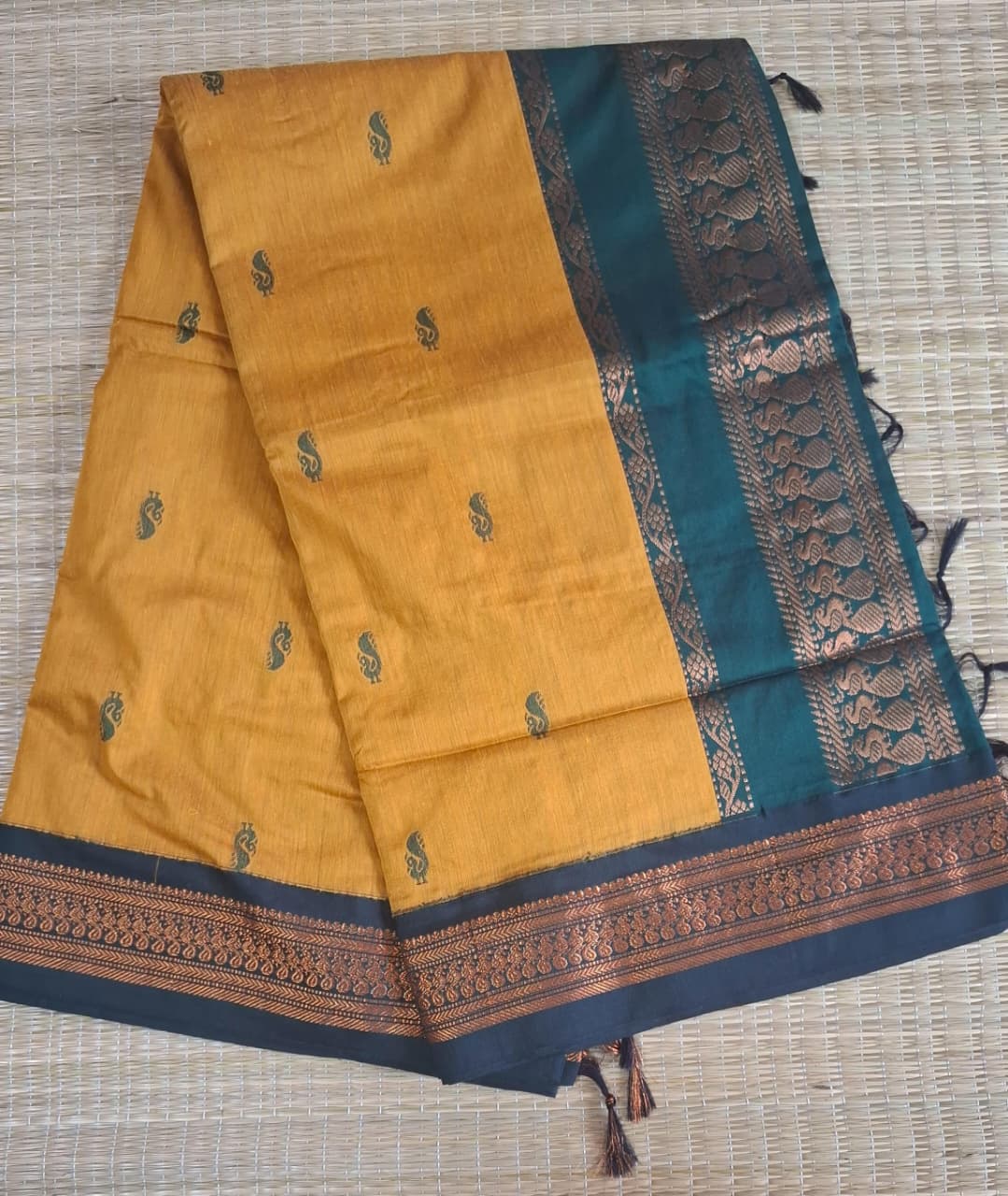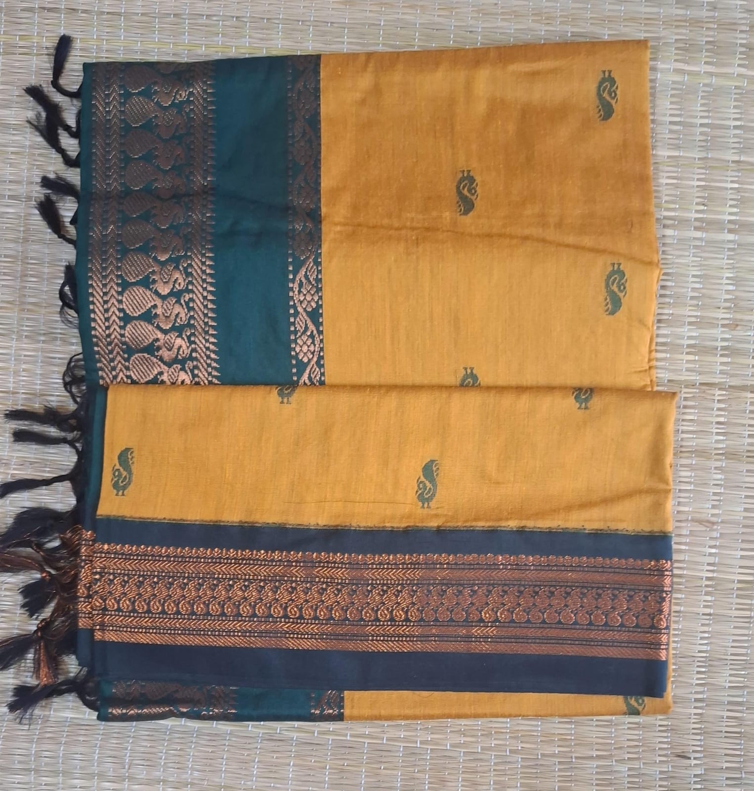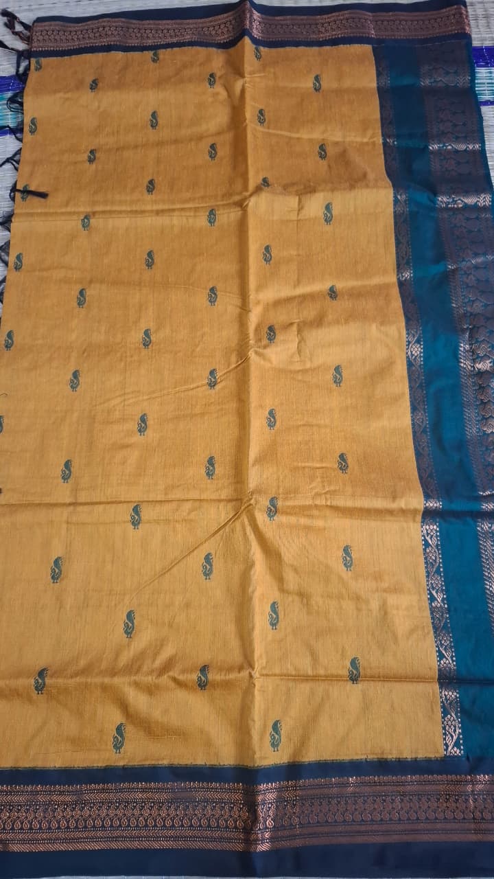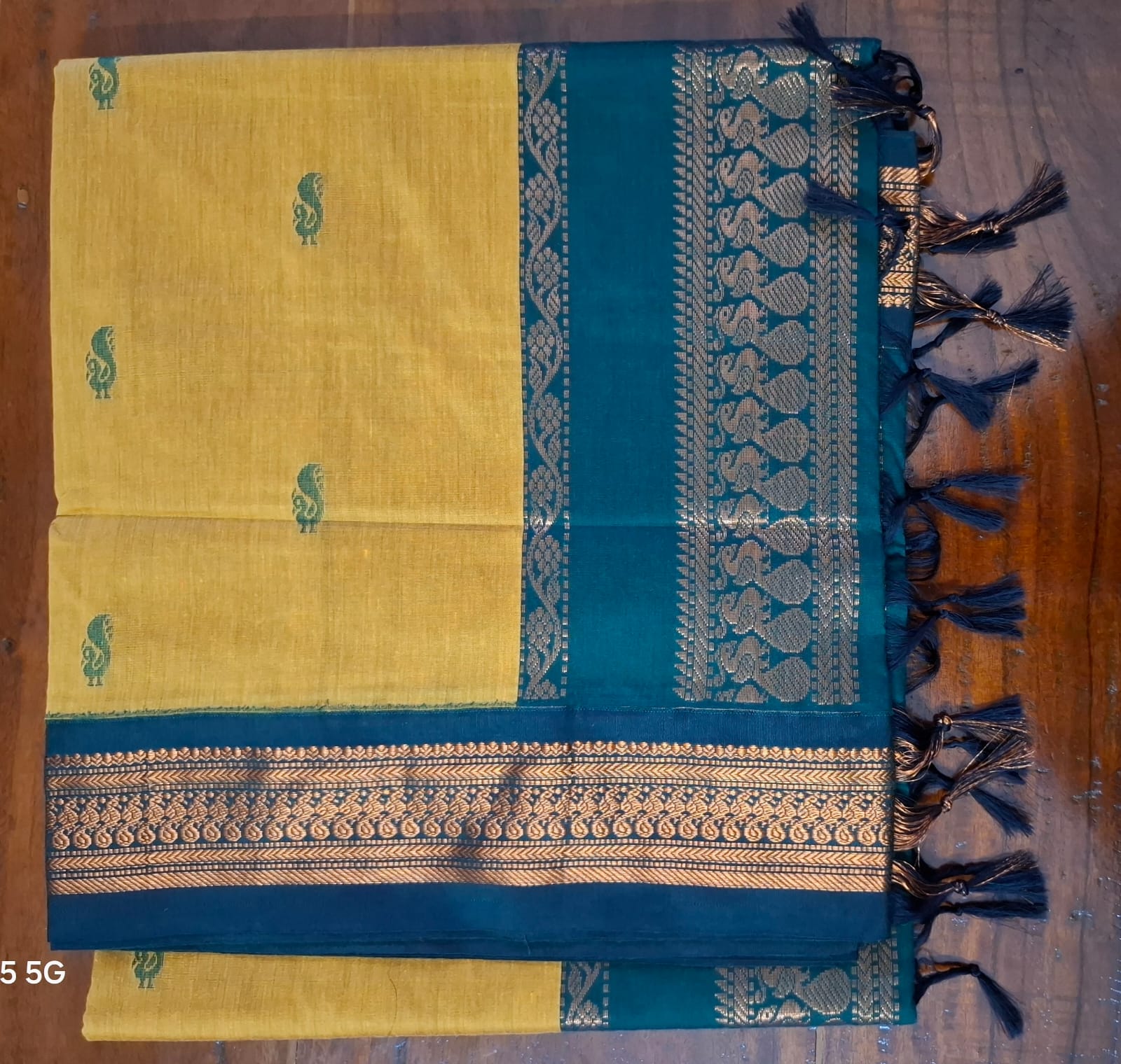 + Free ShippingFenugreak yellow saree with green border blouse