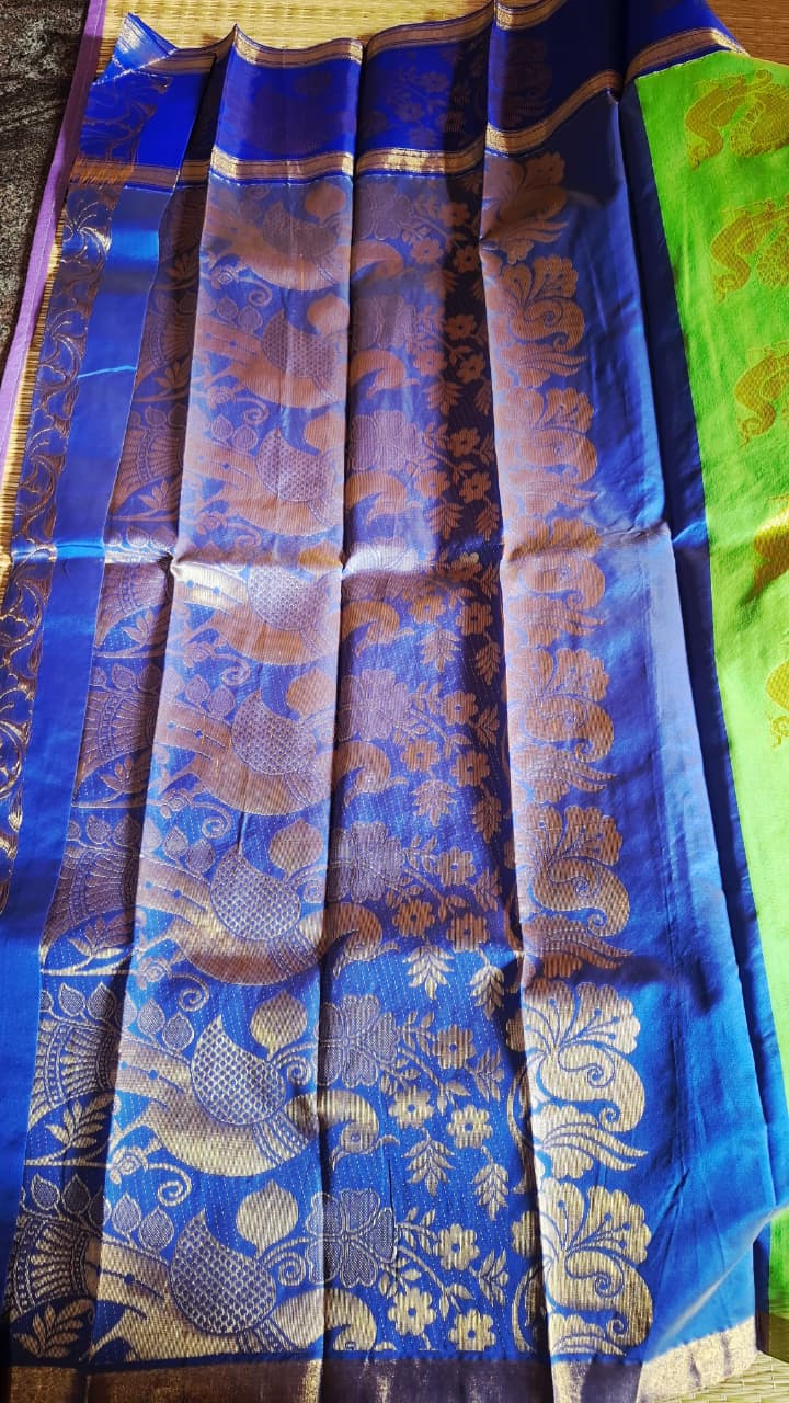 Parrot Green Saree with Blue border blouse and pallu