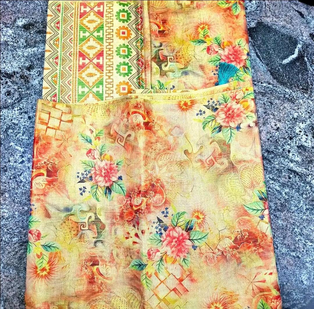Gold digital print saree