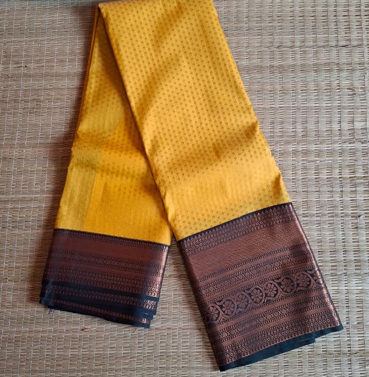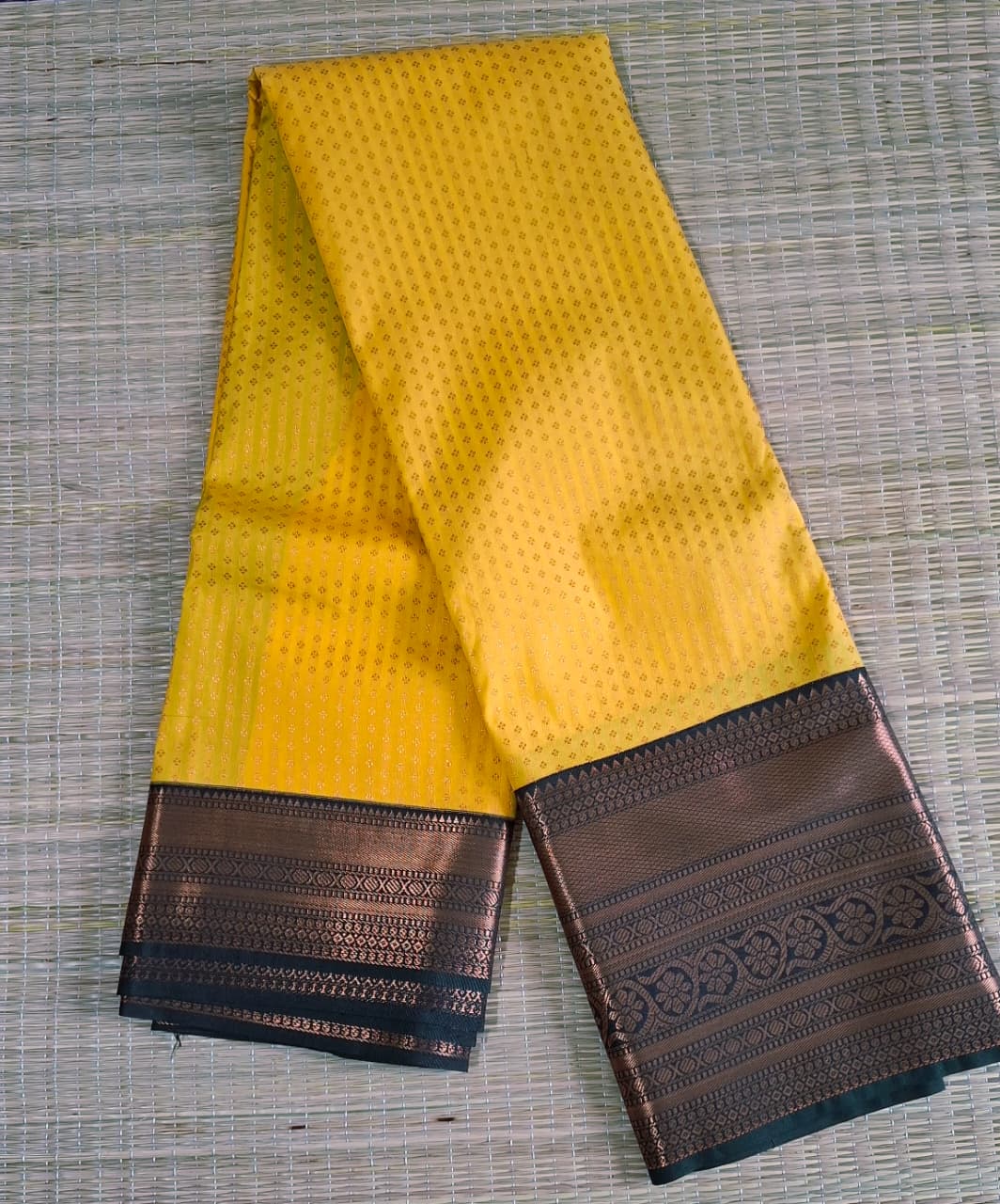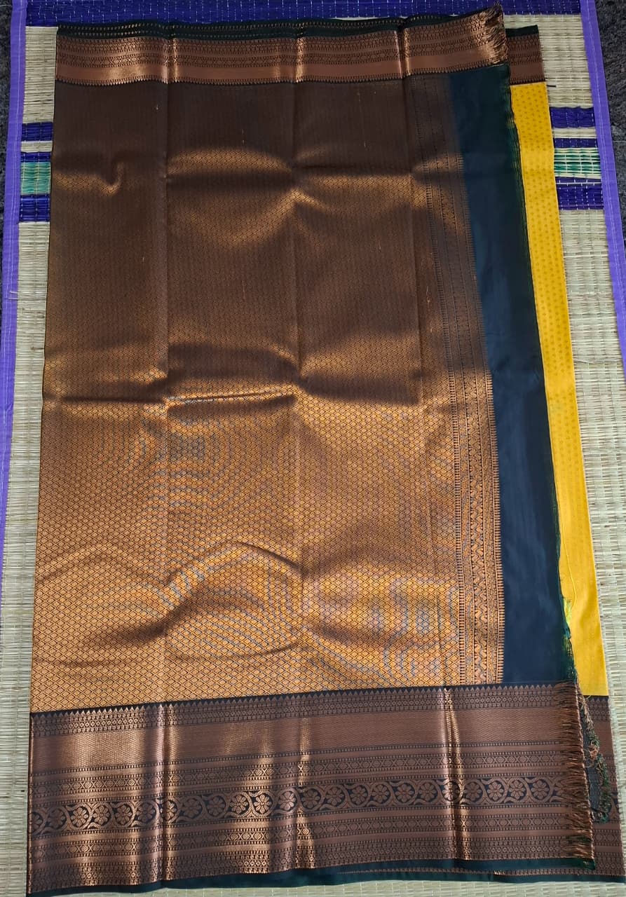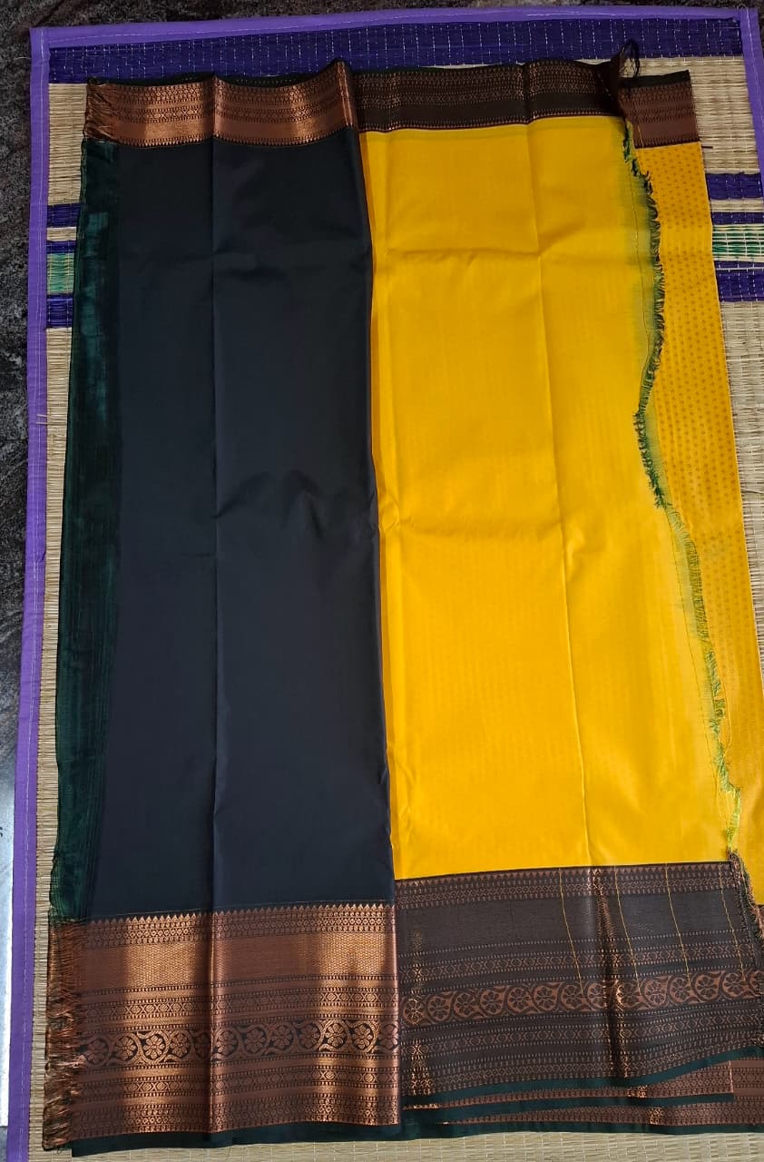 + Free ShippingYellow saree with Bottle Green Border bloue and pallu