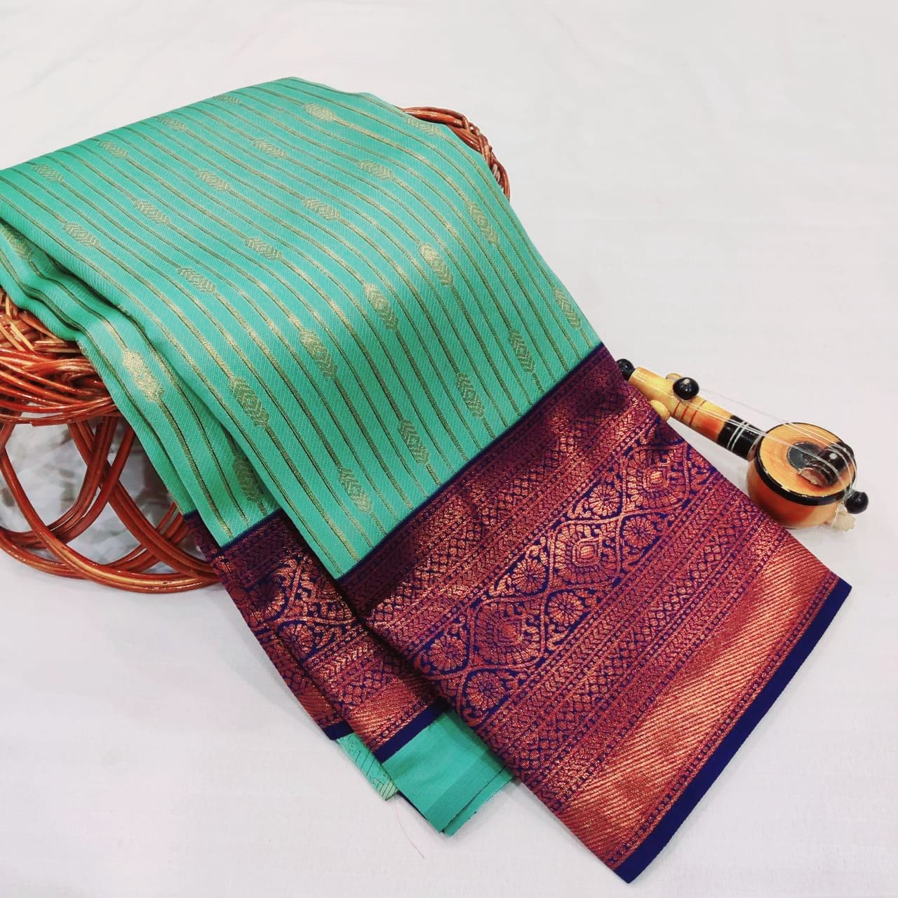 + Free ShippingSea green saree with Blue border blouse and pallu